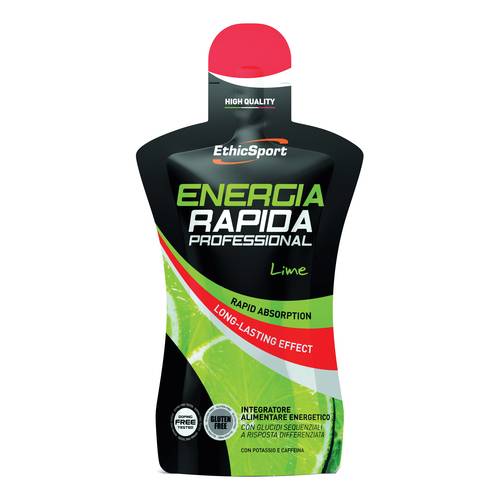 Energia rapida professionalDescrizione Integratore alimentare energetico con glucidi sequenziali a risposta differenziata, a corta, media e lunga catena. Permette una rapida disponibilità di glucosio e una distribuzione dell'energia nel tempo. Contiene caffeina e potassio. La caffeina contenuta (100 mg/dose = 2 pack) contribuisce ad aumentare la lucidità mentale e a migliorare la concentrazione. Energia Rapida Professional è consigliata per fornire energia rapidamente in modo da contrastare situazioni di calo energetico momentaneo e garantire un apporto energetico di lunga durata. Gusto lime. Ingredienti Acqua, maltodestrine a m...