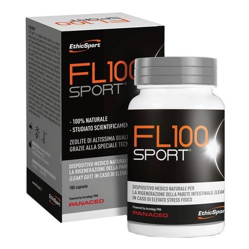 Vedi descrizione completaFL100 SPORT Dispositivo medico CE 0197 di classe IIa. Aiuta a prevenire l’acidosi lattica (acidificazione dei muscoli dovuta ad incremento di acido lattico) conseguenza di un marcato sforzo fisico e riduce lo stress ossidativo. L’effetto è basato sulla particolare caratteristica della Zeolite attivata di ridurre, in maniera prettamente fisica, la formazione di radicali liberi nell’apparato digerente. Di conseguenza, l’ossigeno risulta più disponibile per i processi aerobici e, grazie ad un migliore metabolismo energetico e del lattato, viene migliorata l’efficienza dell’organismo e abbreviato il tempo di recupero.