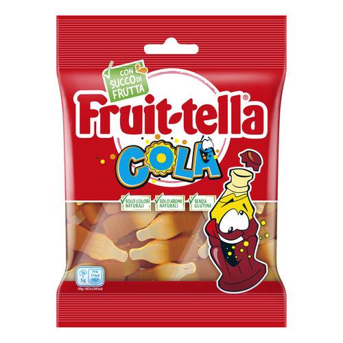Fruit-tella ColaCARAMELLA GOMMOSA AI FRUTTI NATURALI Caratteristiche Caramelle gommose gusto cola, con succo di frutta naturale, solo aromi naturali senza coloranti artificiali. Formato Confezione da 100 g. Cod. 233200